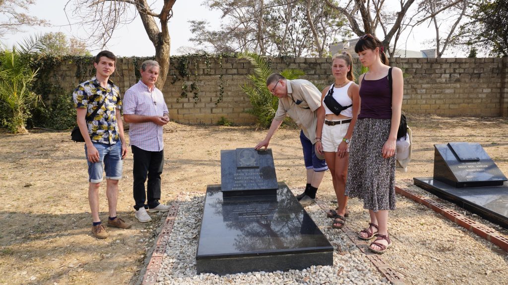 Przebywając w Zambii na każdym kroku spotykamy miejsca naznaczone działalnością o. Adama Kozłowieckiego. Jego ponad 60 letnia posługa w Zambii zapisała się w pamięci tysięcy Zambijczyków a owoce jego pracy służą im do dziś. Ufamy też, że zgodnie z obietnicą, ojciec Adam czuwa nad misją zambijską i wspiera swoich następców. Kard. Adam Kozłowiecki SJ zmarł 28 września 2007 roku w Lusace i został pochowany przy archikatedrze Dzieciątka Jezus. Odwiedziliśmy to miejsce wraz z o. Tadeuszem Świderskim SJ otaczając modlitwą o. Adama. Gorąco polecamy lekturę “Wśród ludu Zambii” pod red. Ludwika Grzebienia SJ bedącą wyborem listów Kozłowieckiego. To fascynująca lektura zarysowująca osobowość misjonarza ale przede wszystkim dzieje misji zambijskiej, której współczesną odsłonę dane jest nam odkrywać.