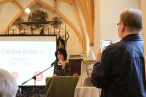 Kinga Waliszewska, z międzynarodowego Papieskiego Stowarzyszenia Pomoc Kościołowi w Potrzebie, która wniosła kluczowy wkład w organizację spotkania, przypomniała jego autoportret duchowy, skreślony w więziennym liście do swej siostry, Krystyny: (7.02.1960) pisał: „Nie ma tego złego, co by na dobre nie wyszło. A nad naszym życiem czuwa Opatrzność Boża! (…) Jak kto Ciebie o mnie zapyta, to powiedz, że żywot Czesia to zawsze jakieś niezwyczajne rzeczy; okupacja, powstanie, szpital i kryminały, różne dziedziny działania. Jednym słowem niespokojny żywot. Ale i więzienie kiedyś się skończy, będzie kiedyś wyrównana sprawiedliwość – może też spełnią się moje ideały i wyjadę do Afryki”. Pani Kinga jest autorką znakomitego artykułu o o. Cz. Białku, opublikowanego na kilku internetowych stronach, m.in. Jednym słowem niespokojny żywot – tekst Kingi Waliszewskiej.