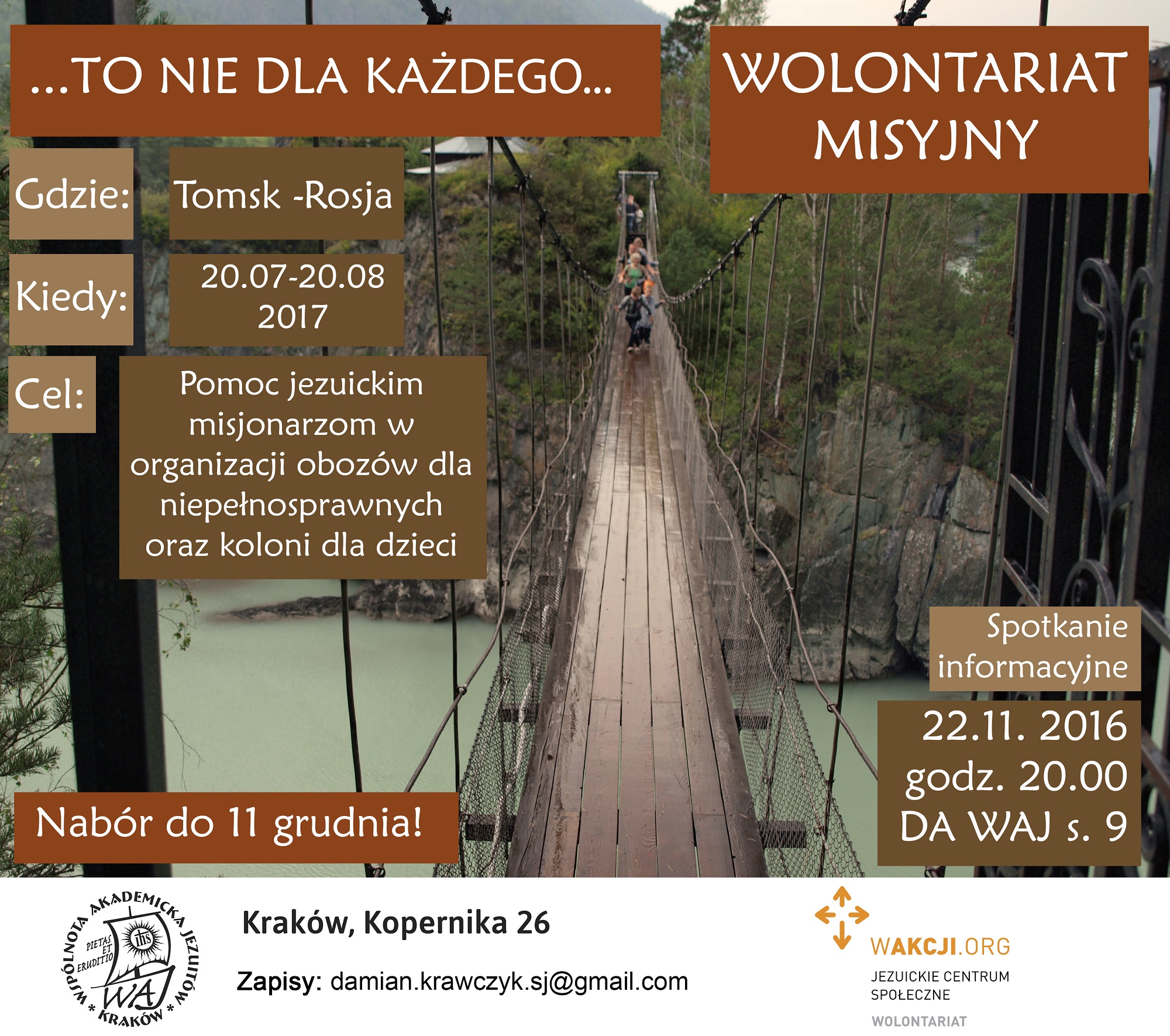 Spotkanie informacyjne: 22 listopada godz. 20.00 sala 009 DA WAJ, ul. Kopernika 26 Kraków.