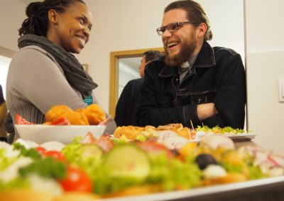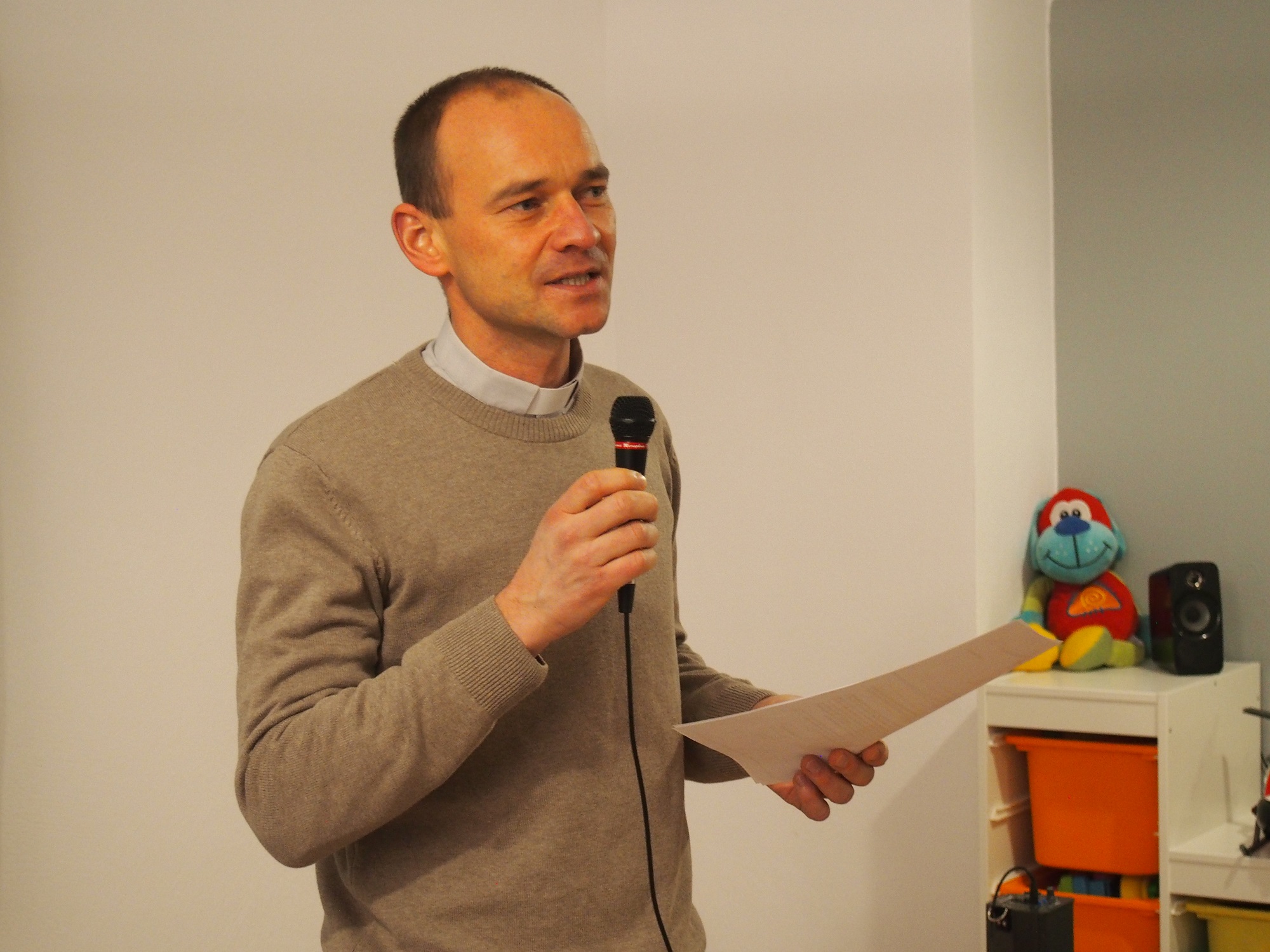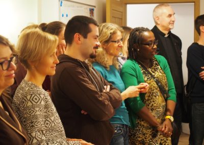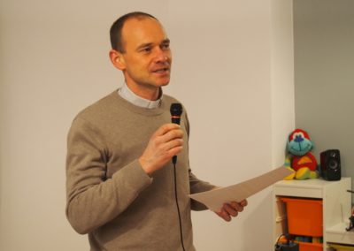 Spotkanie zaczęło się od krótkiego przemówienia o. Grzegorza Bochenka SJ, dyrektora JCS „W Akcji” i Ekonoma PMA, w którym cytował listy: kard. Kazimierza Nycza oraz Asystenta Generała o. Tomasza Kota SJ. Oba pisma zawierały słowa wdzięczności za służbę i otwartość serca na potrzeby uchodźców i migrantów.