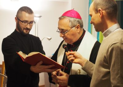 Następnie Abp Pennachio pobłogosławił i poświęcił pomieszczenia nowej siedziby. W trakcie obrzędu skierował do zebranych krótkie słowo. Nuncjusz jako reprezentant Ojca Świętego podziękował za opiekę nad uchodźcami oraz zachęcił do dalszej pracy dla tych którzy szukają schronienia w naszym kraju.