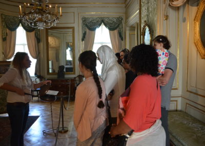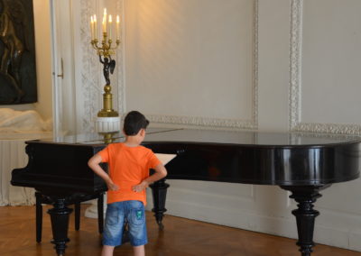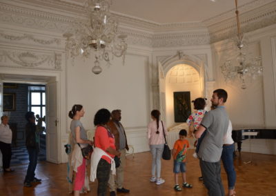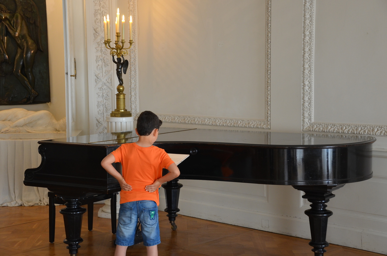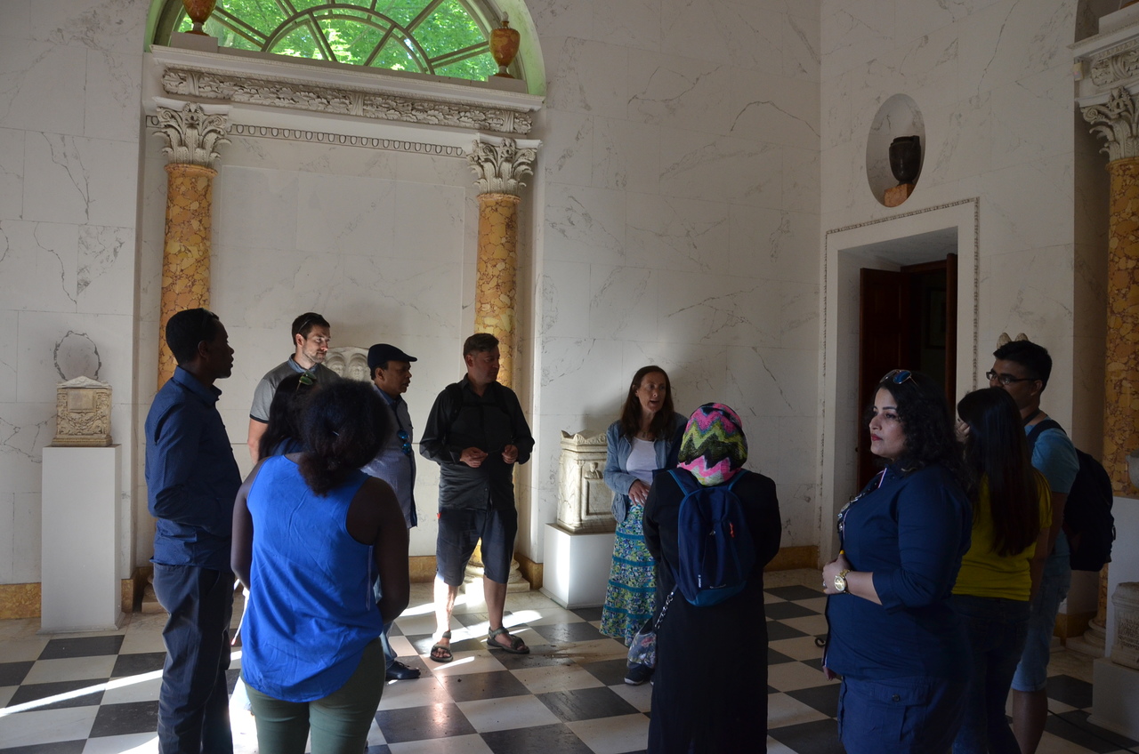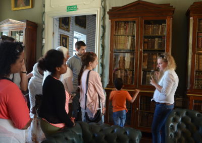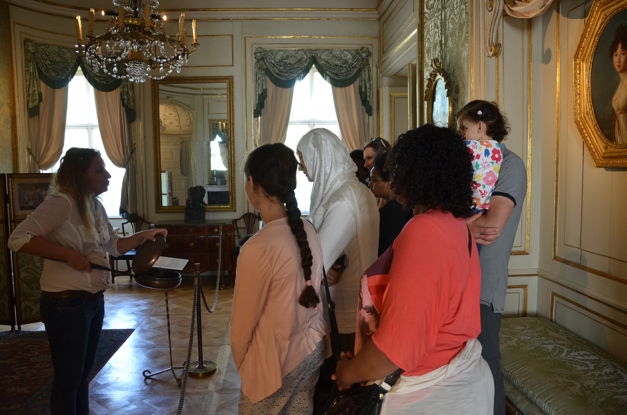 Następnie wyruszyliśmy do Nieborowa, gdzie przenieśliśmy się na książęce komnaty Pałacu rodziny Radziwiłłów z początku XVIII w. Mogliśmy tam obejrzeć piękne antyczne meble i inne zabytkowe przedmioty, w które wyposażony jest pałac – porcelany, szkła, tkaniny, stare książki, a także globus przedstawiający świat tamtych czasów. Szukaliśmy na nim miejsc, gdzie znajdują się kraje, z których pochodzimy – jak Abisynia, na terenie której leży współczesna Etiopia i Erytrea. Wielką popularnością w naszej grupie cieszył się także szezlong, który widzieliśmy w jednaj z komnat Księżnej Heleny. Wielu z nas miało nieskrywaną ochotę odpocząć sobie w tym miejscu.