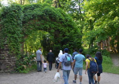 Ostatnim etapem naszej wycieczki był romantyczny Park Arkadia nad rzeczką Skierniewką, założony przez Księżnę Helenę Radziwiłłową. Spacerowaliśmy tam w przepięknej majowej zieleni drzew i krzewów, pośród których co jakiś czas mogliśmy natknąć się na zabytkowe budowle nawiązujące stylem do antyku – jak choćby Świątynia Diany (Miłości i Mądrości), Akwedukt, Grota Sybilli czy Łuk Kamienny. Tak oto spacer w baśniowej atmosferze ogrodu Księżnej zakończył naszą wspólną podróż w dawne i współczesne czasy na Ziemi Łowickiej.