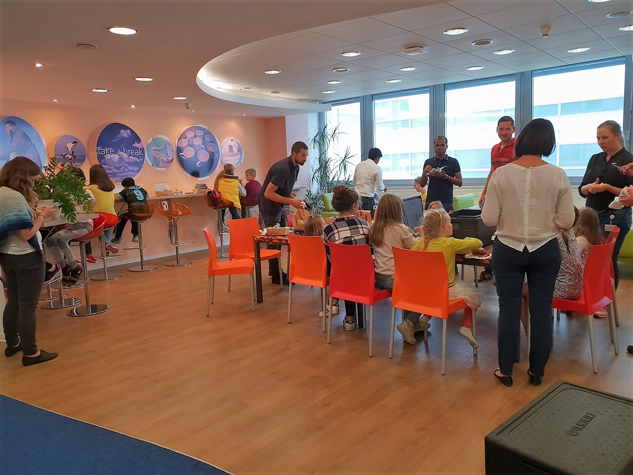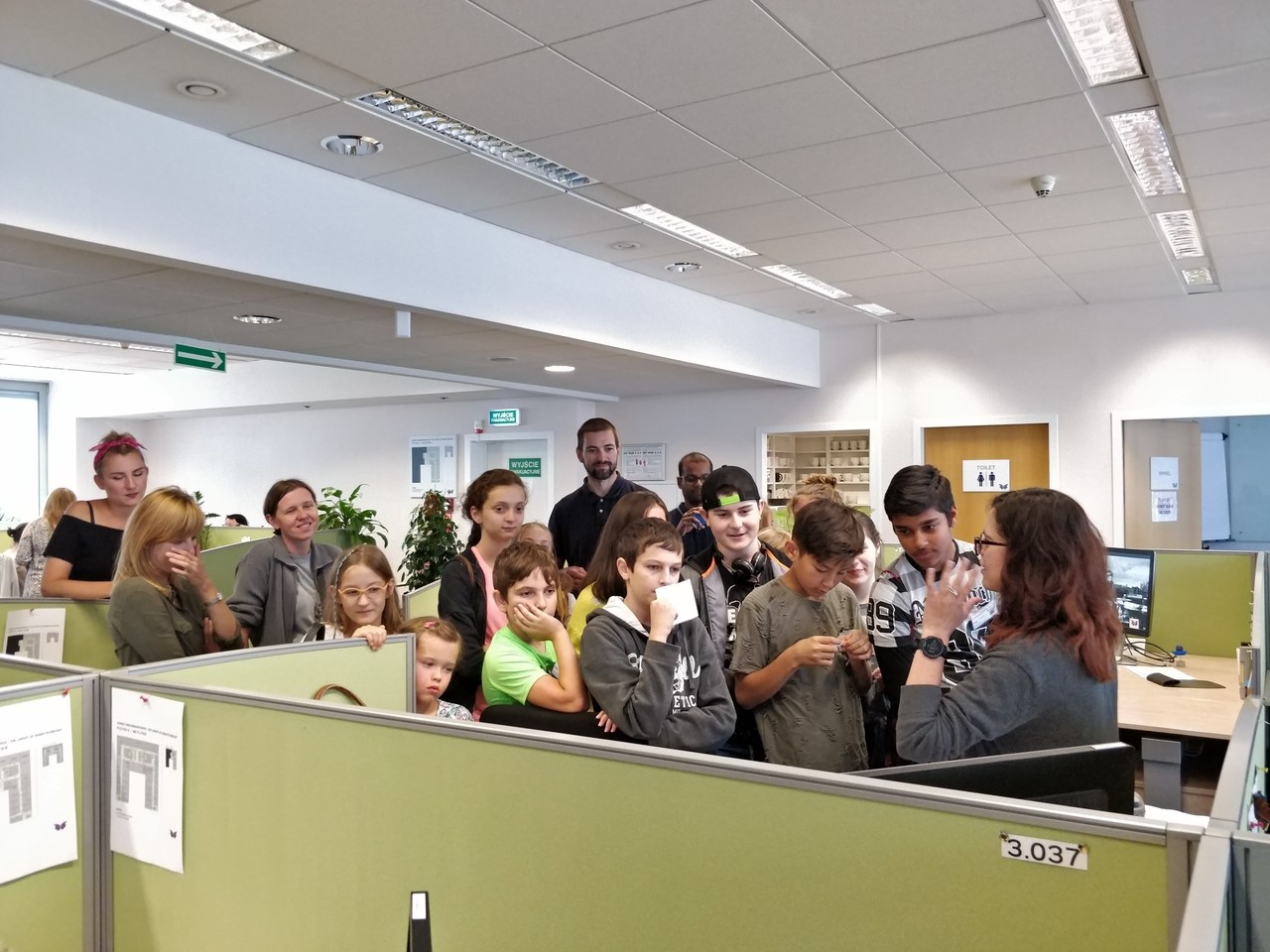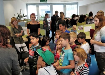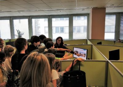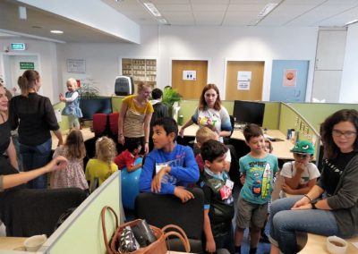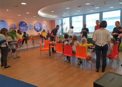 Zaczęliśmy od odwiedzin. Nasi dobroczyńcy, firma Coty Inc. otworzyła przed nam swoje drzwi i mogliśmy zobaczyć na własne oczy jak wygląda praca w jednym z warszawskich wieżowców. Nasze “łobuzy” wspólnie z dziećmi pracowników mogły “pobuszować” po zakamarkach biura. Miały też przygotowany specjalny “tour” po działach firmy, by poznać ich specyfikę, a zagadki i zadania przygotowane przez pracowników pomogły im wszystko lepiej zrozumieć. Radość towarzysząca zwiedzającym udzielała się wszystkim, bo jak tu zachować powagę, skoro spod biurka wychodzi maluch z uśmiechniętą buźką? 😉 Po firmowym lunchu, korzystając z zaproszenia naszych gospodarzy przenieśliśmy się do Centrum Nauki Kopernik. Tam nastąpił ciąg dalszy przygody małych i dużych odkrywców 😉 Dwie godziny biegania po wystawie, gdzie wszystko można było dotknąć, pokręcić, poprzestawiać. Nie wiadomo, kto więcej się nabiegał, dzieci czy dorośli. Niemniej jednak powrót do naszego Centrum nastąpił dość planowo i choć zmęczenie dniem było duże, to radość wielka :-).