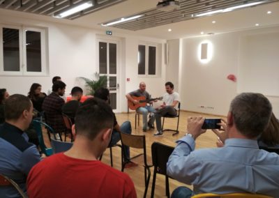 Przedstawiciele poszczególnych centrów społecznych dzielili się osiągnięciami ostatnich trzech lat swojej pracy. Wskazywali na najlepsze praktyki i procedury, jakie udało się wdrożyć zarówno w obrębie działalności samego JRS-u jaki i jego relacji z organizacjami rządowymi oraz pozarządowymi. Dzielenie na forum ukazało również różnorodność problemów migracyjnych, będących wyzwaniem dla poszczególnych centrów, chociażby ze względu na unikalną sytuację polityczną i geopolityczną krajów. W dwóch grupach warsztatowych dzieliliśmy się również doświadczeniem nauki języków obcych oraz wsparcia prawnego udzielanego imigrantom. Jeden z ciekawych eksperymentów polegał na odczytywaniu świadectw uchodźców i wolontariuszy, z zadaniem emocjonalnego zaangażowania się i „wejścia w rolę” ich autorów. Również sami uchodźcy brali aktywny udział w panelach dyskusyjnych. Przygotowali oni ponadto wieczorek poetycki, recytując własne wiersze napisane w języku francuskim.
