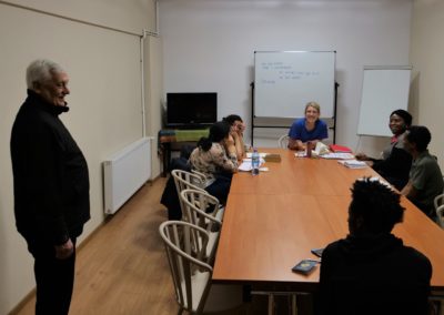 Zapoznał się z zakresem działalności naszego Centrum i zamienił kilka słów z uchodźcami, którzy w tym czasie odbywali swoją lekcję języka polskiego. Wizyta była krótka, gdyż o. Generał miał bardzo napięty grafik spotkań. Cieszymy się jednak z odwiedzin tak znakomitego gościa :-).