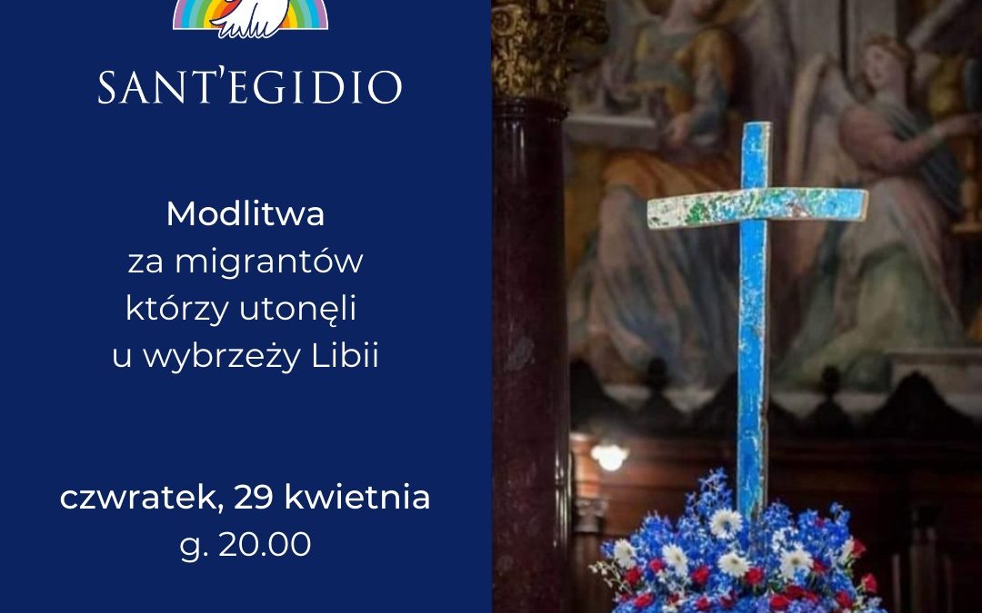Wspólnoty Sant’Egidio w całej Europie w najbliższych dniach będą modlić się w intencji ofiar tragedii u wybrzeży Libii. Wspólnota w Warszawie zaprasza do wspólnej modlitwy, która odbędzie się w czwartek 29 kwietnia o godz. 20. w parafii Świętej Barbary przy ul. Nowogrodzkiej 51. Będzie ona transmitowana na kanale YouTube Wspólnoty Sant’Egidio w Polsce.