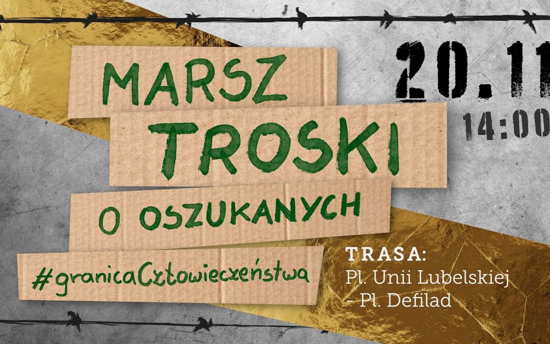W sobotę 20.11. przejdziemy ulicami Warszawy, by wyrazić troskę o ludzi oszukanych, zdesperowanych i bezradnych. Będzie to akt solidarności z osobami tkwiącymi od tygodni lub miesięcy w śmiertelnej pułapce między Polską, a Białorusią, przy milczącej akceptacji innych państw Europy. W potrzasku znaleźli się ludzie, którzy wskutek manipulacji i oszustw białoruskiego reżimu przybyli do Mińska, ryzykując całe swoje życie i dorobek, a teraz – brutalnie bici, przepychani przez służby, głodni i wychłodzeni – kryją się w lasach na granicy. Chcemy wyrazić sprzeciw wobec przemocy wobec ludzi, którzy błagają o naszą pomoc. W trudnej sytuacji są też mieszkańcy i mieszkanki strefy przygranicznej, zmuszani do bohaterstwa i świadkowania ludzkim dramatom – pamiętamy i o nich.