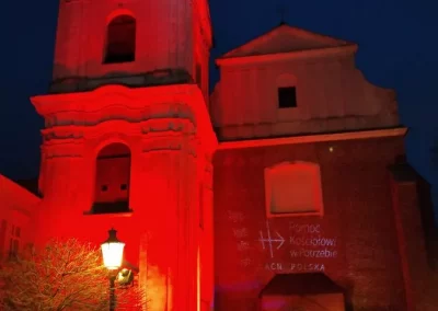 Po zakończeniu czuwania uczestnicy wzięli udział w eucharystii w intencji chrześcijan cierpiących za wiarę w jezuickim kościele Najświętszego Serca Pana Jezusa i Matki Bożej Pocieszenia, który wraz z wieżą przez cały wieczór był podświetlony na czerwono.