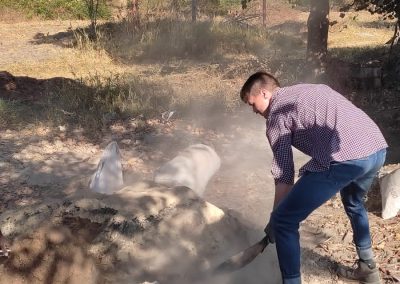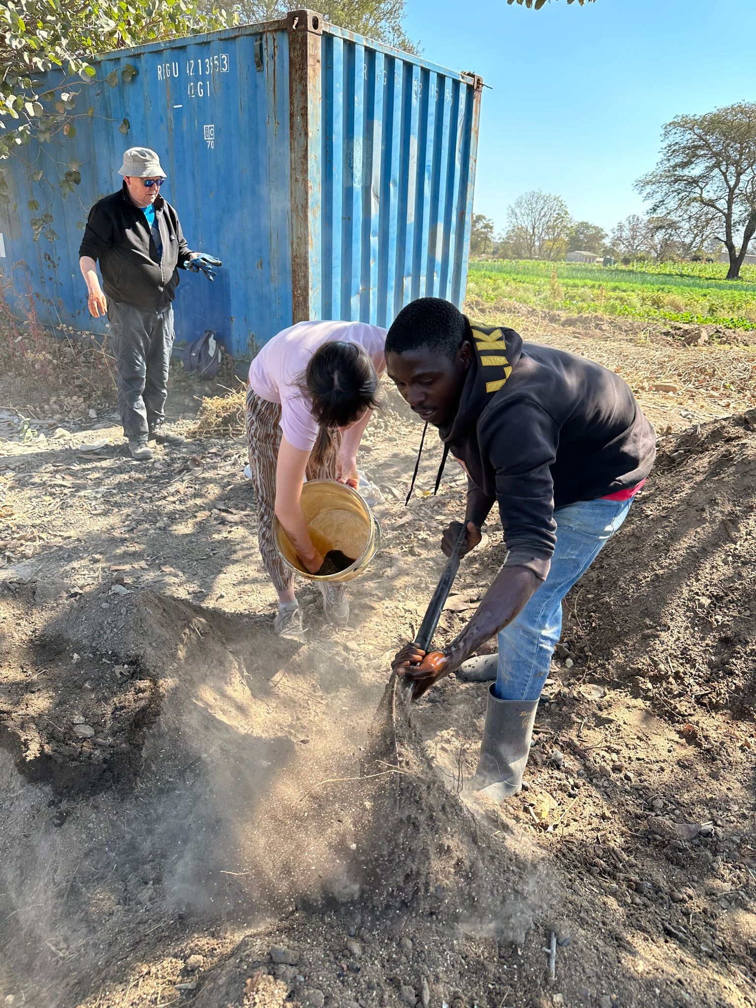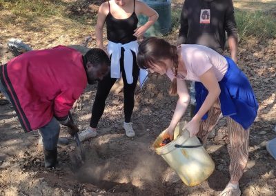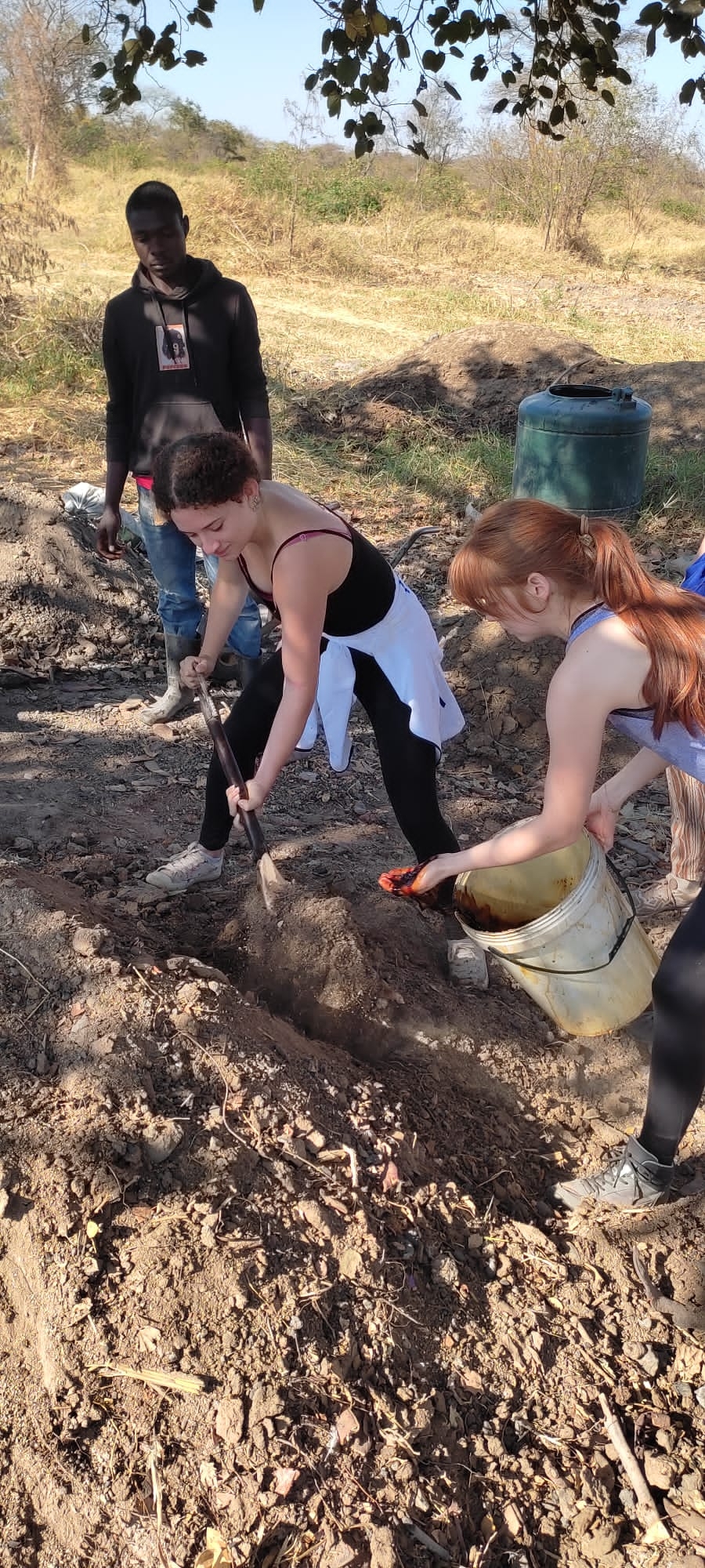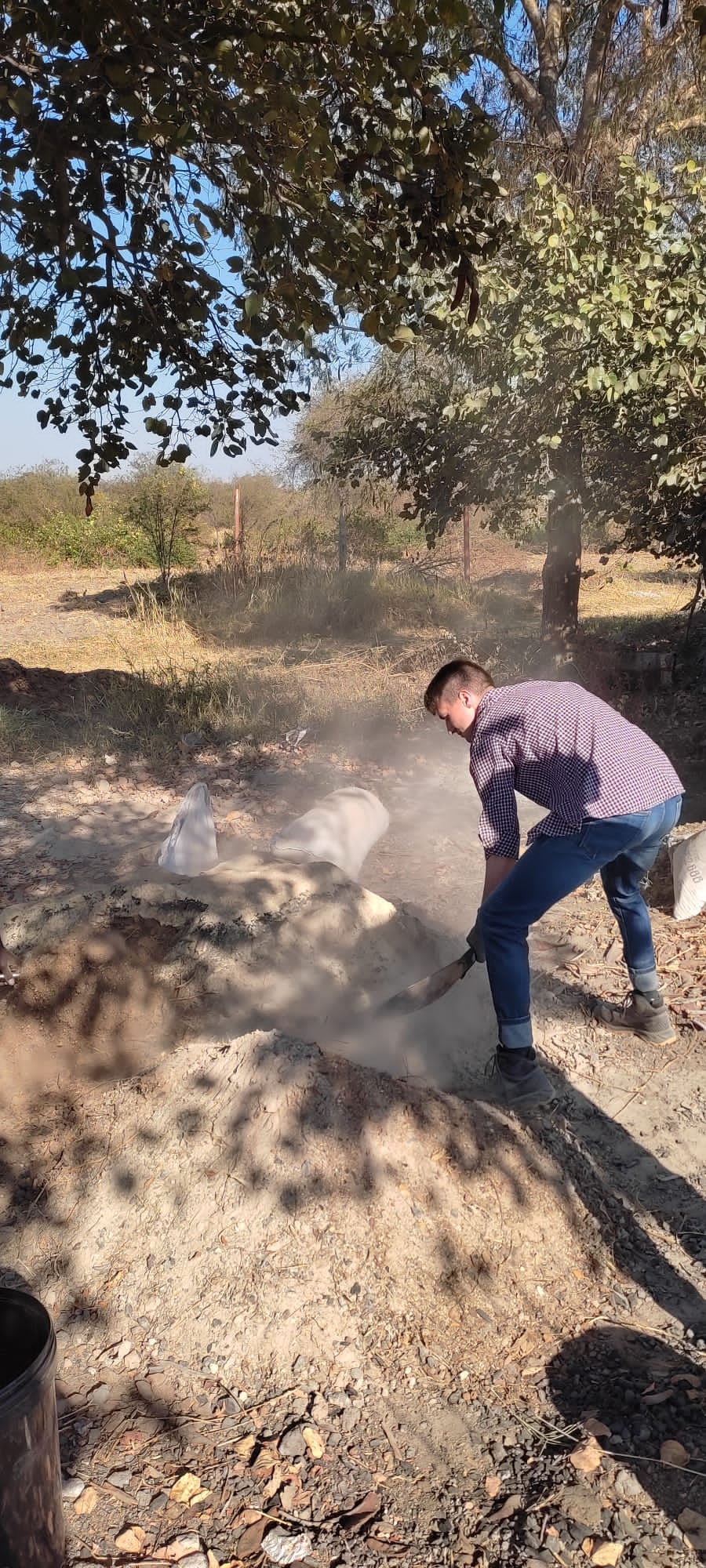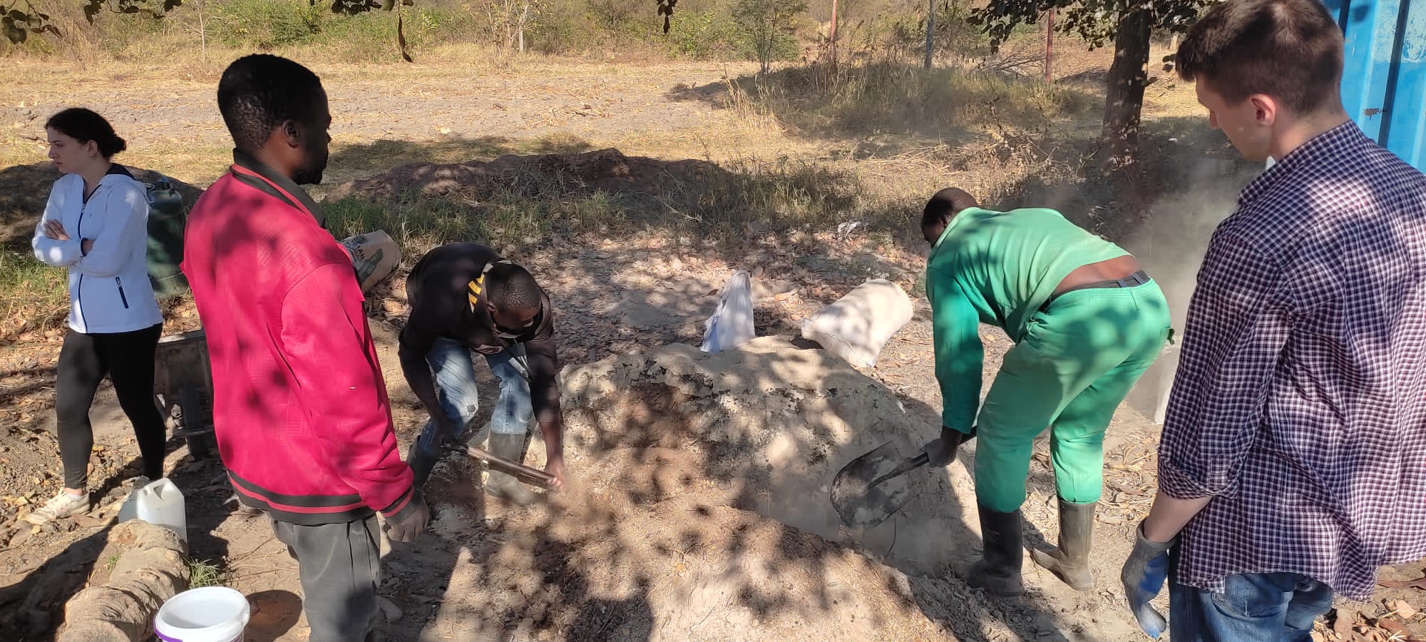 Za enigmatycznym słowem „bokashi”kryje się proces chemiczny tworzący nawozowy substrat. Bokashi pochodzi z języka japońskiego, zapisuje się go jako ぼかしOznacza “zamazywanie, zacieranie”, “stopniowe zamienianie”. Głównym komponentem używanym na farmie w Kasisi są: kukurydza, obornik: kurzy, krowi, kozi, trawa, węgiel drzewny, popiół lub drożdże, melasa buraczana zmieszane z wodą. Ta, jak się domyślacie, o specyficznym zapachu mikstura podlega fermentacji. Należy ją doglądać przez dwa tygodnie, mieszając i pilnując aby jej temperatura nie przekroczyła 40 stopni C.
