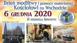 II Niedziela Adwentu to DZIEŃ SOLIDARNOŚCI Z KOŚCIOŁEM NA WSCHODZIE W tym roku obchodzimy Dzień modlitwy i pomocy duchowej i materialnej Kościołowi w krajach Europy Wschodniej, Rosji i Azji Środkowej. Módlmy się za siostry i braci tworzących Kościół Katolicki na Wschodzie i wspierajmy ich materialnie.