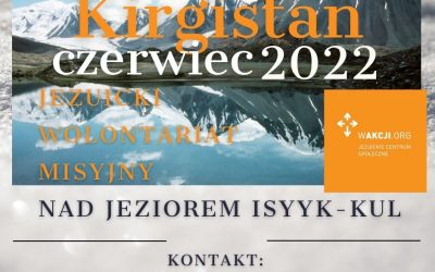 Wciąż dostępne są wolne miejsca na czerwcowy wyjazd do Kirgistanu. Jeśli chcesz pomóc przy obozach letnich dla dzieci, to nie wahaj się i napisz do Sebastiana Lelka SJ. Jest okazja, żeby zrobić dużo dobra w to lato. Mail: [email protected] Tel.:...