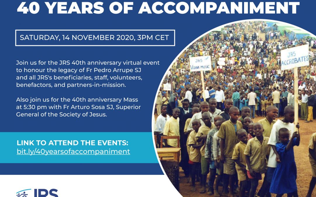 Jezuicka Służba Uchodźcom została założona przez o. Pedro Arrupe SJ, przełożonego generalnego Towarzystwa Jezusowego, 14 listopada 1980 roku. Czterdzieści lat później, JRS nadal promuje swoją posługę „bycia bardziej z naszymi siostrami i braćmi uchodźcami, niż dla...