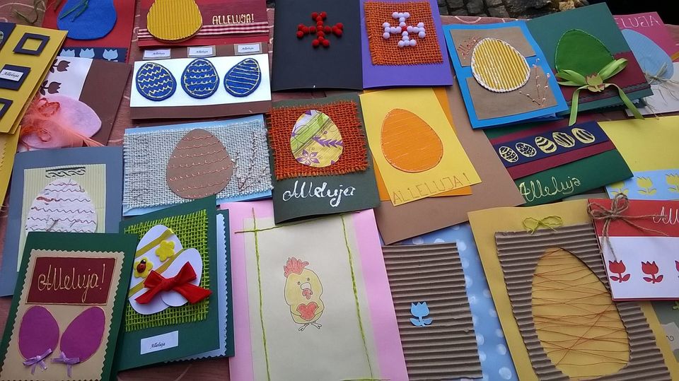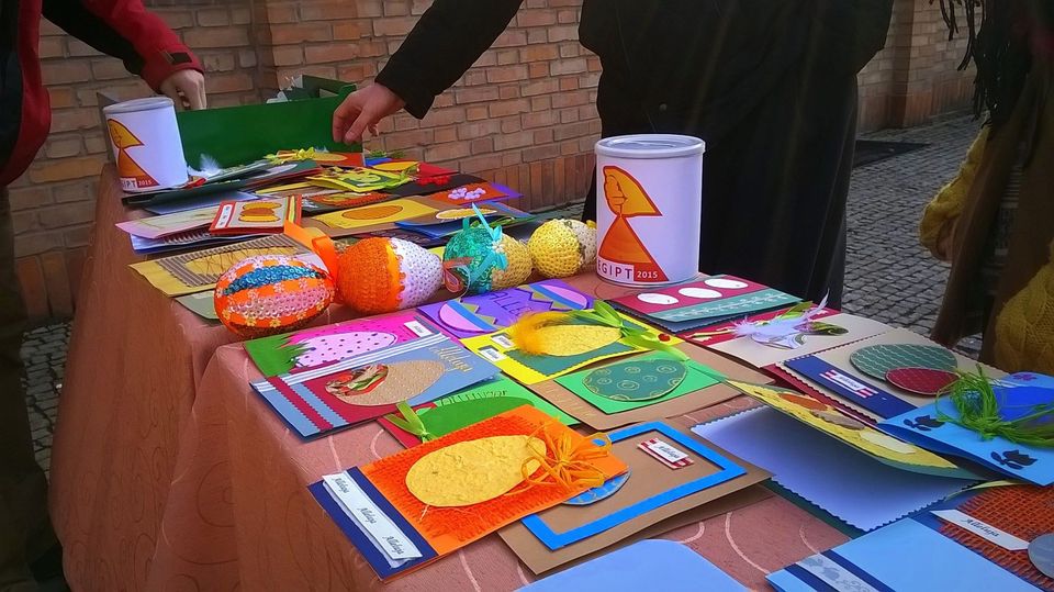 Wczoraj rozpoczęliśmy pracę nad kartkami Wielkanocnymi. 15 marca odbędzie się kiermasz, na którym będziemy sprzedawać zrobione przez nas kartki i inne rzeczy, a cały dochód przeznaczony będzie na cele naszego projektu. Więcej info niebawem!