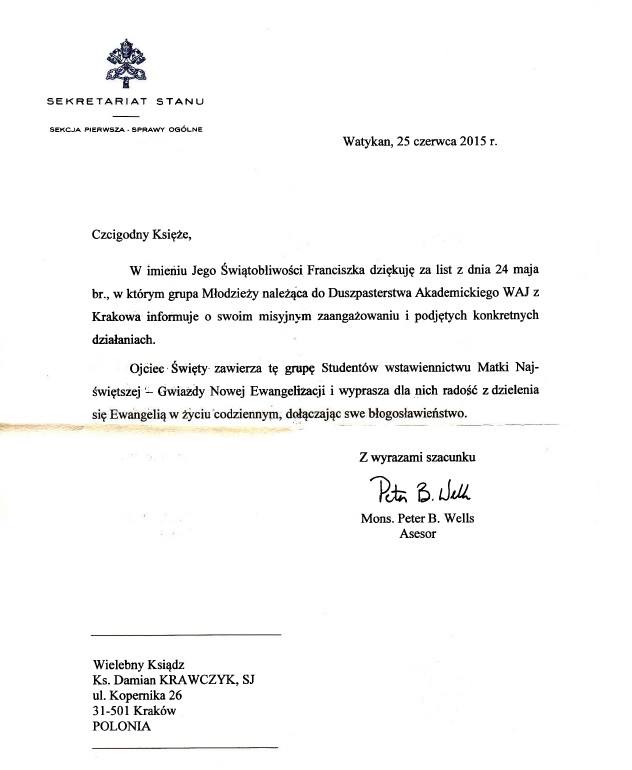 Przed kilkoma tygodniami wysłaliśmy list do Ojca Świętego z prośbą o błogosławieństwo naszego wyjazdu do Egiptu oraz o modlitwę za to, byśmy będąc już tam na miejscu, potrafili świadczyć o Nim otwartością naszych serc, o odwagę dla nas i bezpieczny przebieg wolontariatu. Otrzymaliśmy odpowiedź! Sami zobaczcie…