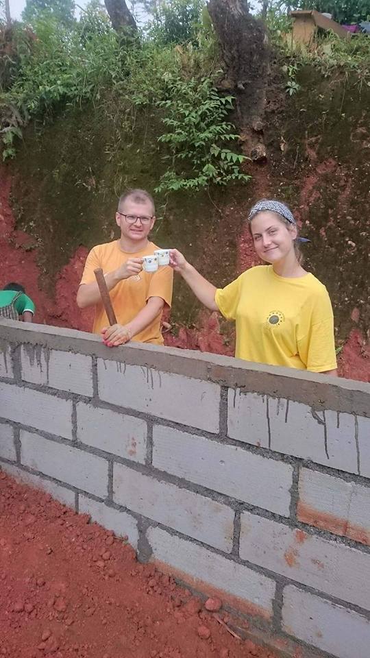 Ściany już prawie gotowe, praca na budowie wre. W czasie wolnym pomagamy w miejscowej szkole oraz bawimy się z dziećmi z wioski 🙂
