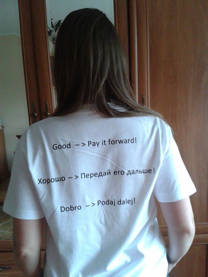 Dzisiaj odebraliśmy koszulki, które posłużą nam oraz dzieciom na obozie jako specjalne znaczniki lokujące produkt Dobro Podaj Dalej 😉 Padło przy tym ciekawe określenie dotyczące nazwy naszego projektu – w skrócie DPD skojarzyło się z usługami kurierskimi 🙂 A dlaczego by nie – kurierzy wiozący dobro – fajna opcja !