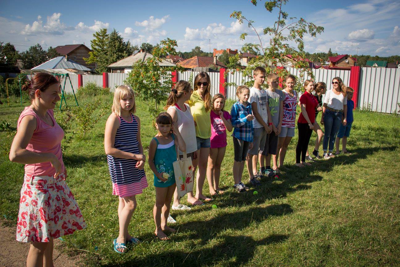 Początek naszego wolontariatu obejmował organizację obozu językowego dla dzieci w wieku 10 – 17 lat pochodzących z Tomska oraz jego okolic. W trakcie obozu odpowiedzialni byliśmy za naukę języka angielskiego, zagospodarowanie czasu wolnego dzieci oraz przygotowywanie wspólnych posiłków. Pierwszym celem było uczenie angielskiego, zaś drugim – zdecydowanie ważniejszym – dawanie uwagi, szacunku i miłości dzieciom, które tego potrzebują. Wspaniały czas z dziećmi pozwolił nam poznać się lepiej. Ucząc angielskiego (i pomagając sobie polskim, rosyjskim, niemieckim oraz migowym) udało nam się zaprzyjaźnić i spędzić wspaniały czas razem.