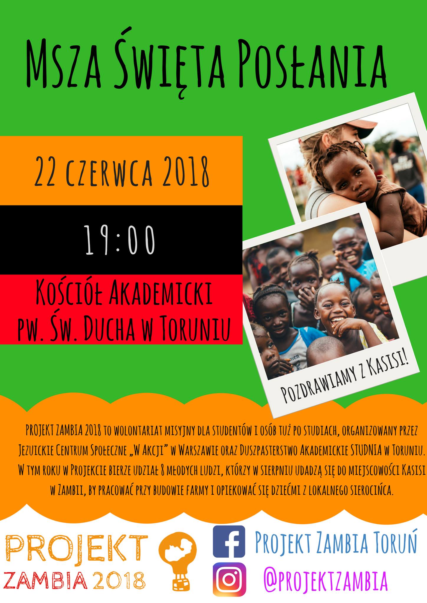 Kochani! Już w najbliższą niedziele, w Kościele Akademickim Ojców Jezuitów pw. Św. Ducha w Toruniu, będziecie mogli poznać nowych wolontariuszy kolejnej edycji Projektu Zambia 🇿🇲🌱 Odliczamy dni do pierwszego spotkania 😊