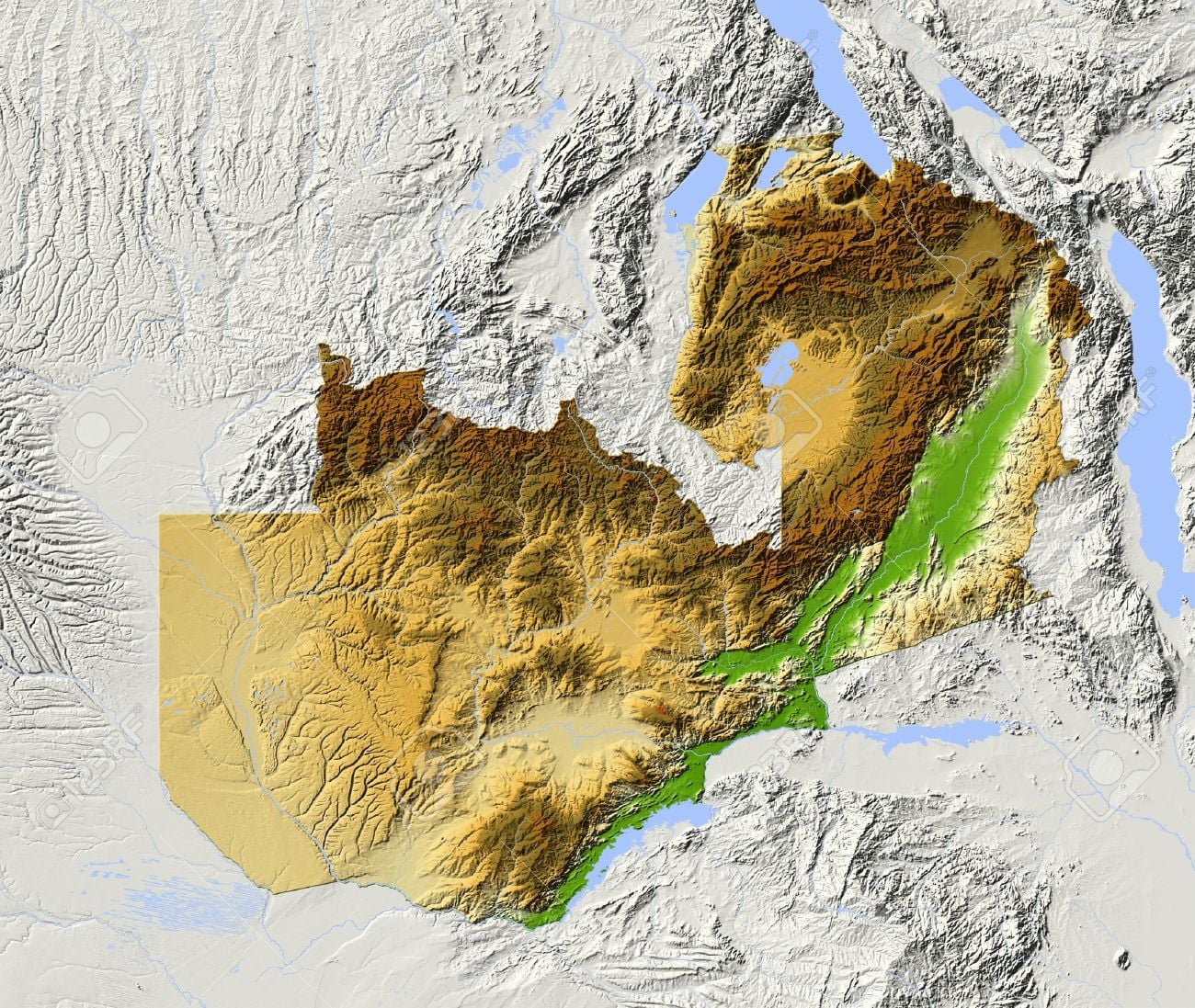 – główne doliny kraju, takie jak Gwembe, Zambezi i Luangwa (kolor zielony i fioletowy).